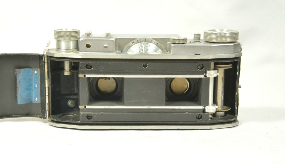 Le Vérascope F40 considéré comme l’un des meilleurs appareils stéréoscopiques prend 2 vues 24×30 mm sur film classique 35 mm.